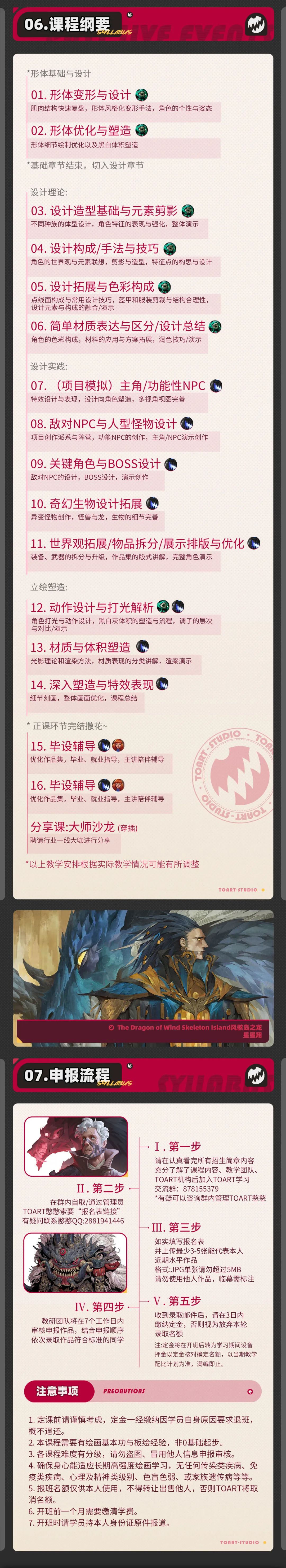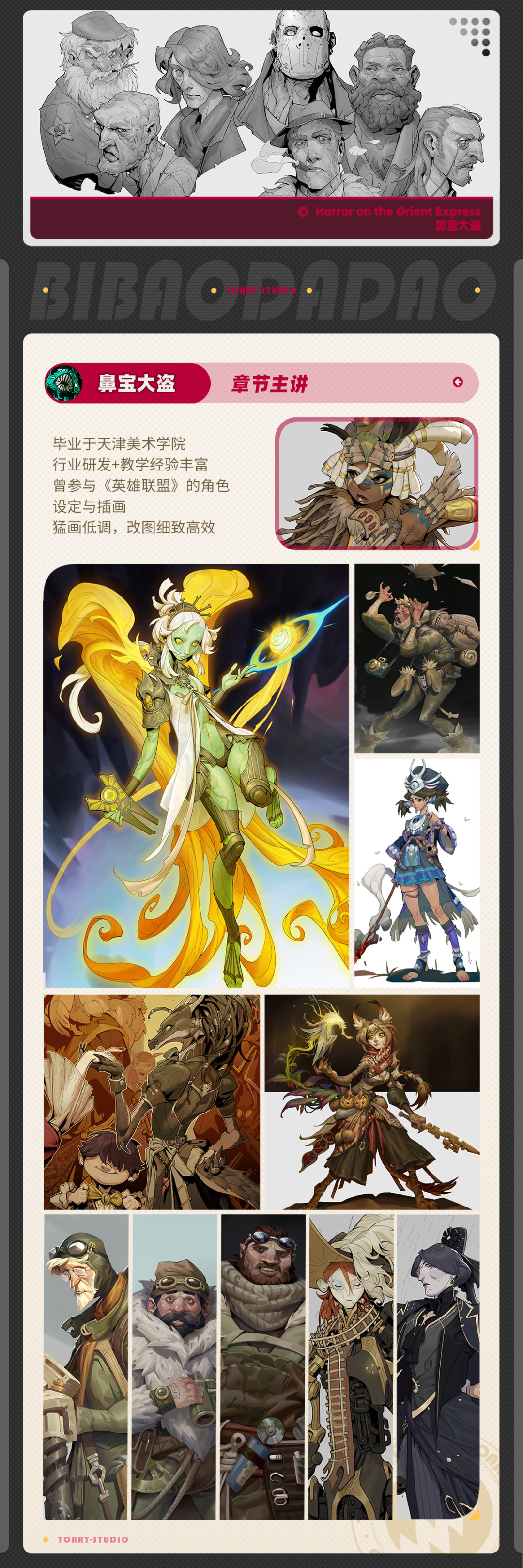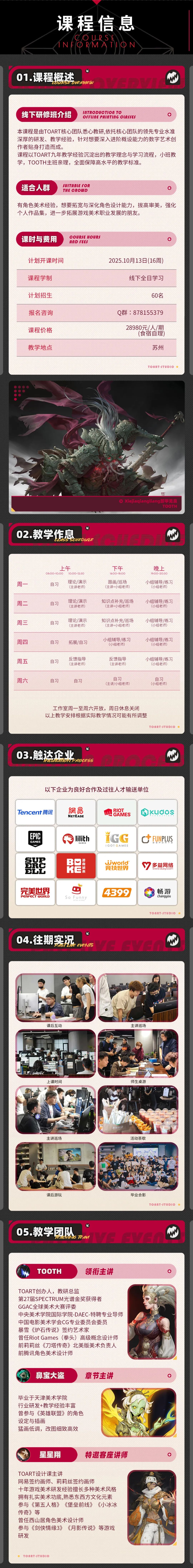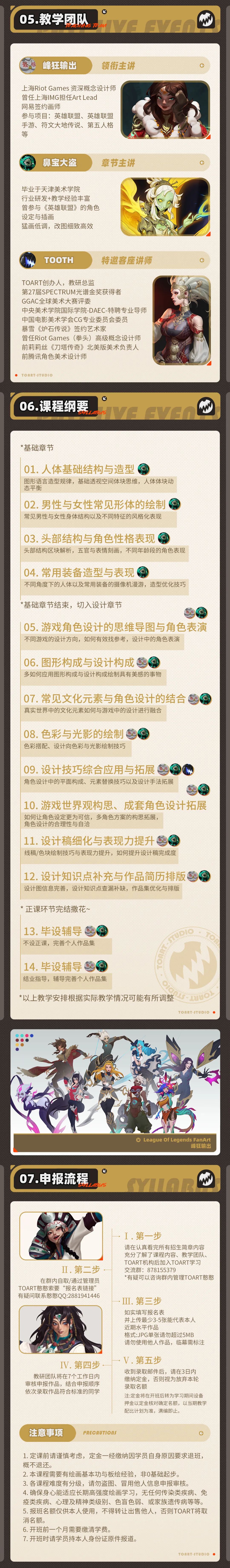课程概要:16周,TOOTH老师主讲亲理,教学团队全程辅导。全面深化造型能力、系统进阶设计思路与技巧,扩展设计宽度和知识面。打造一套或者数套高完成度、具有趣味与审美、含金量高的原画作品集。